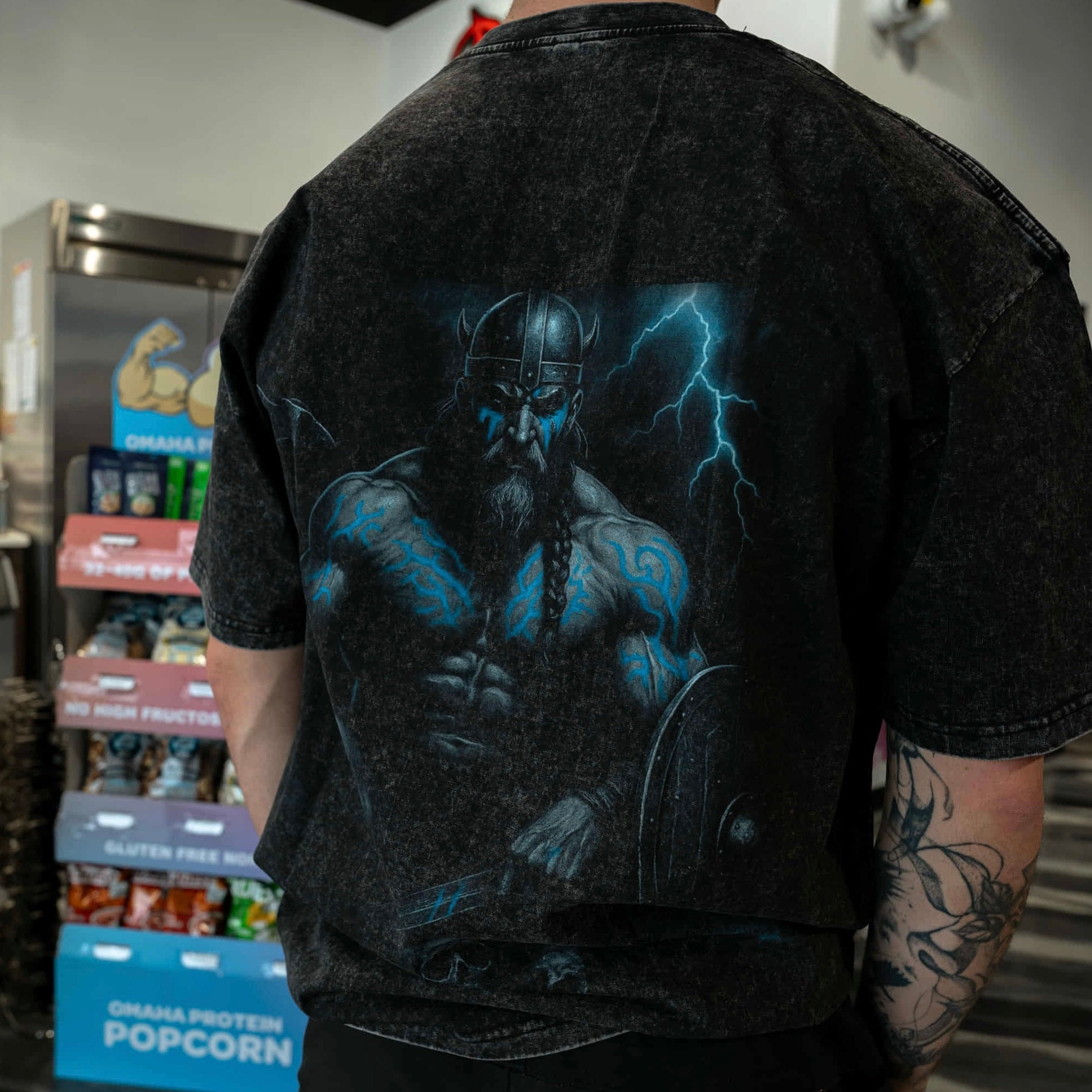 True North x Rebel fit always bring it on the collabs.  Built for lifters who train with intent. The gothic front script sets the tone, and the savage Viking graphic on the back hits with pure warrior energy. Heavyweight, oversized, and made to move iron, the Northern Rebel.