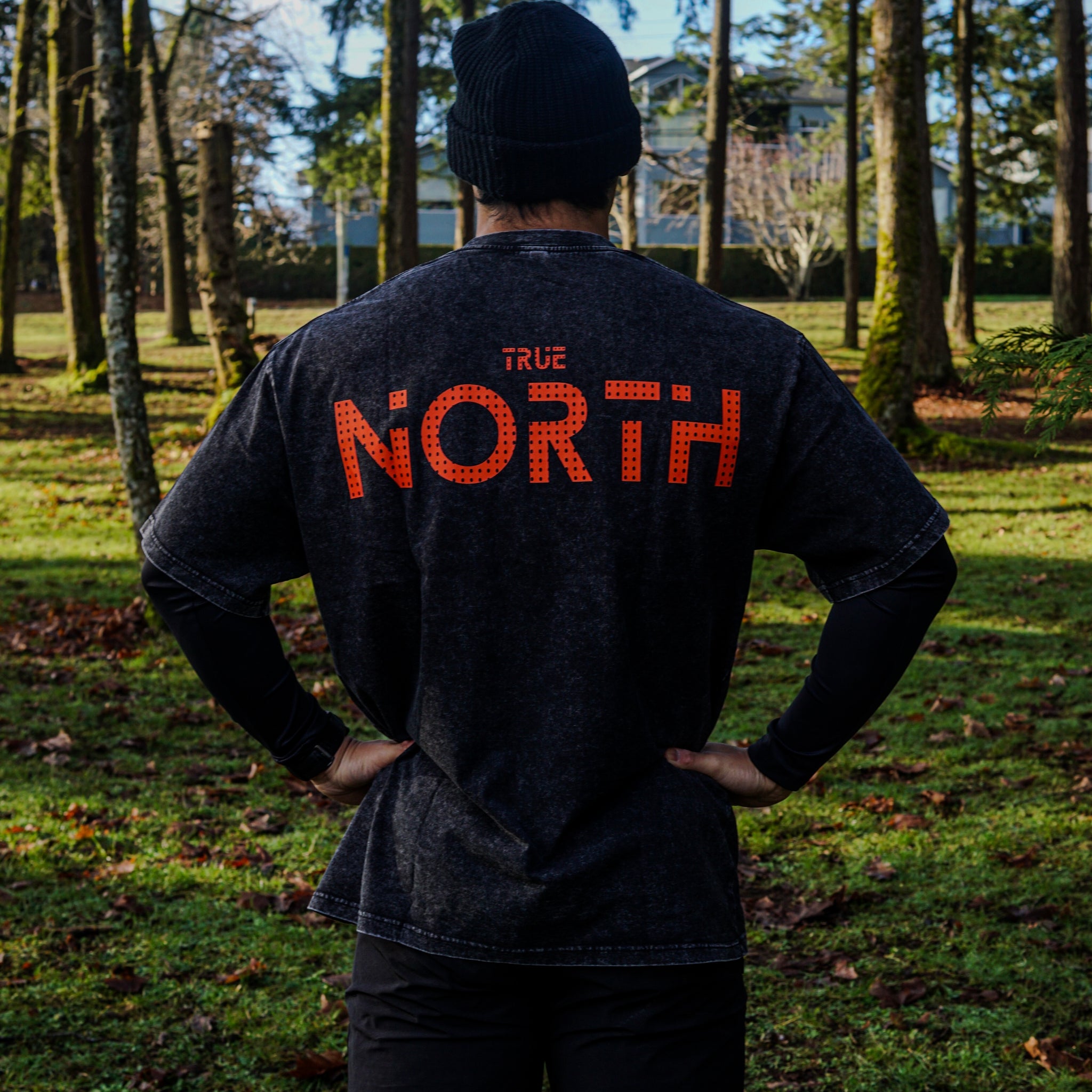- NORTH heat pressed on back